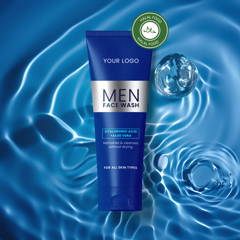 น้ำยาทำความสะอาดผิวหน้าสำหรับผู้ชายหลังโกนหนวดควบคุมน้ำมันออร์แกนิกสูตรบำรุงผิวได้รับการรับรองฮาลาล OEM